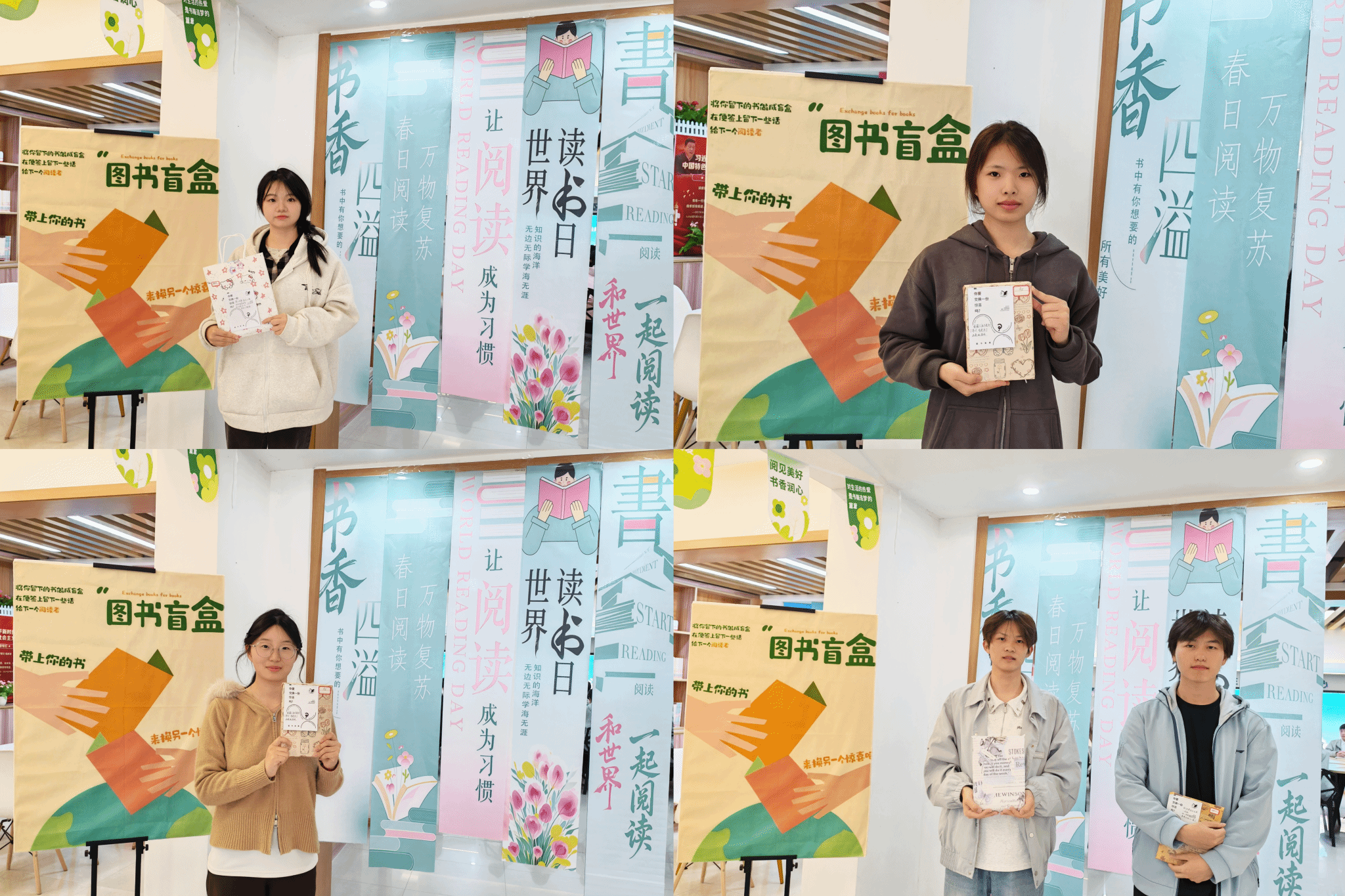 与深度共读相呼应,“图书盲盒”交换活动自4月20日启动后持续升温。4月23日当天,社区交换点前人流不断。同学们将闲置书籍精心包装,隐去书名并附上个性化推荐语,通过随机交换实现知识共享。交换现场秩序井然、惊喜不断。一位同学拆开盲盒后欣喜地表示:“我一直想看这本书,没想到能以这种方式‘偶遇’,阅读的乐趣和仪式感一下子拉满了。”该活动以轻量化、趣味化的形式盘活校园闲置图书,在随机交换中拓宽了学生的阅读边界。