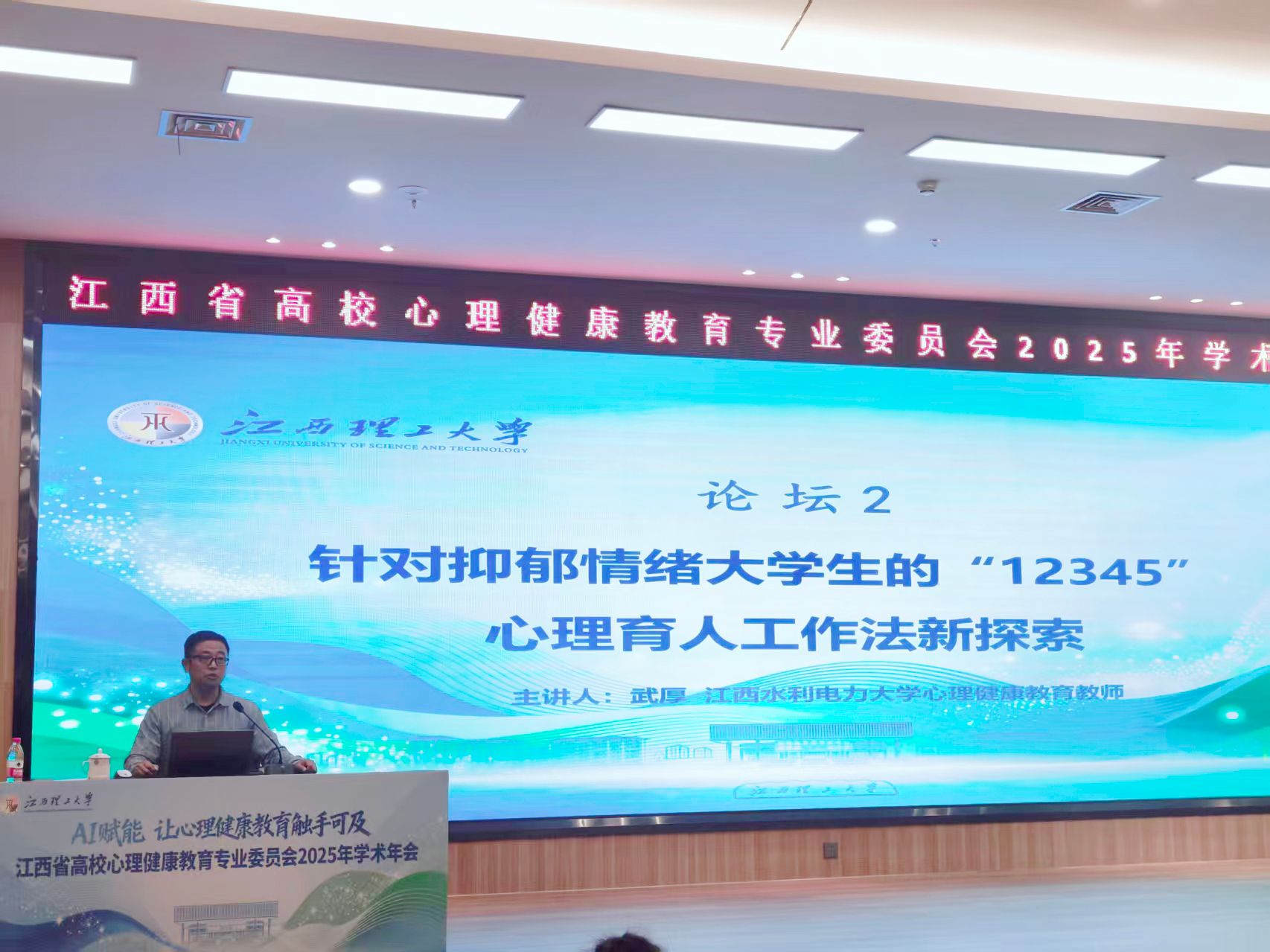 年会设置了两场专家讲座及多场学术论坛。专家报告环节中,中国科学院心理研究所研究员、博士生导师、国家重点研发项目首席科学家刘正奎教授作了《数智化心理健康评估与干预》专题报告;西安交通大学学生心理发展指导中心主任、医学博士姚斌教授就《高校心理咨询的伦理问题及AI时代的挑战》进行深入交流。在学术论坛中,我校心理中心专职教师武厚作了题为《针对抑郁情绪大学生的“12345”心理育人工作法新探索》的现场报告,展现了我校在心理健康教育实践中的创新探索。