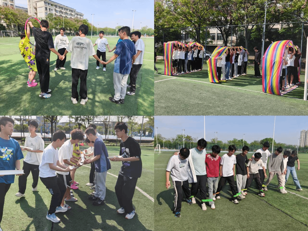 活动以破冰游戏“桃花朵朵开”开篇,参与者在互动中完成随机分组与团队初建,随后依次开展了“一圈到底”“无敌风火轮”“轨道传球”“两人三足”四个特色项目。队员们在活动过程中积极沟通、互相支持,共同应对挑战,进一步增强了彼此间的默契与凝聚力。整场活动氛围热烈而融洽,大家在体验中学习,在协作中成长,强化了对团队的心理认同与归属感。